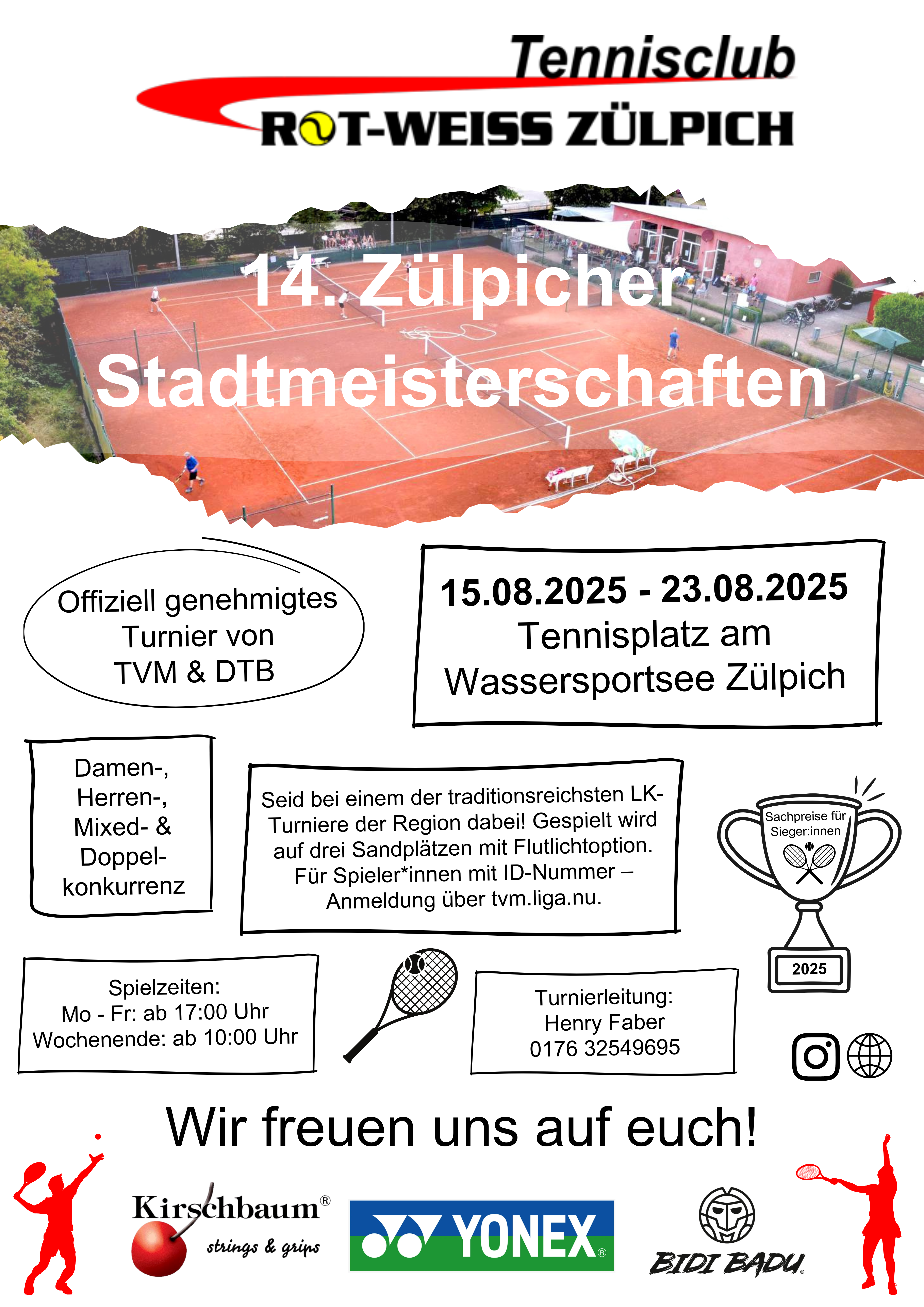 Das Spiel der 1. Herren am Sonntag, den 13.08.2023 gegen den TC RW Geilenkirchen findet um 13:00 Uhr auf unserer Sportanlage am Wassersportsee statt.